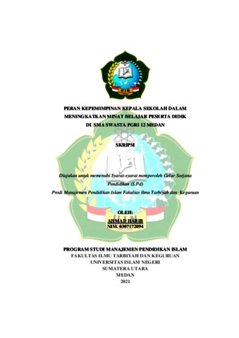 Habib, Habib (2021) Peran Kepemimpinan Kepala Sekolah dalam Meningkatkan Minat Belajar Peserta Didik di SMA Swasta PGRI 12 Medan. Skripsi thesis, Universitas Islam Negeri Sumatera Utara.