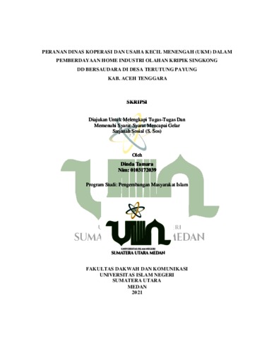 Tamara, Dinda (2021) Peranan Dinas Koperasi Dan Usaha Kecil Menengah (UKM) Dalam Pemberdayaan Home Industri Olahan Kripik Singkong DD Bersaudara di Desa Terutung Payung Kab. Aceh Tenggara. Skripsi thesis, Universitas Islam Negeri Sumatera Utara.