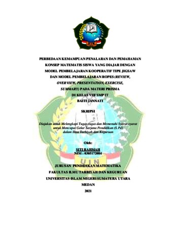 Rahmah, Siti (2021) Perbedaan Kemampuan Penalaran dan Pemahaman Konsep Matematis Siswa yang Diajar dengan Model Pembelajaran Kooperatif Tipe Jigsaw dan Model Pembelajaran ROPES (Review, Overview, Presentation, Exercise, Summary) pada Materi Prisma di Kelas VIII SMP IT Baiti Jannati. Skripsi thesis, Universitas Islam Negeri Sumatera Utara.