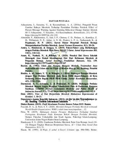 | Uncontrolled Keywords: | Pesan bahaya rokok; Perilaku merokok; Mahasiswa |