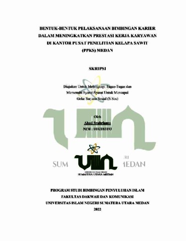 Syabrianto, Ahad (2022) Bentuk-Bentuk Pelaksanaan Bimbingan Karier Dalam Meningkatkan Prestasi Kerja Karyawan Di Pusat Penelitian Kelapa Sawit (PPKS) Medan. Skripsi thesis, Universitas Islam Negeri Sumatera Utara.