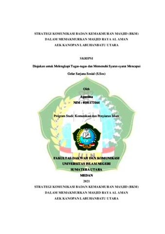 Agustina, Agustina (2021) Strategi Komunikasi Badan Kemakmuran Masjid (BKM) Dalam Memakmurkan Masjid Raya Al Aman Aek Kanopan Labuhanbatu Utara. Skripsi thesis, Universitas Islam Negeri Sumatera Utara.
