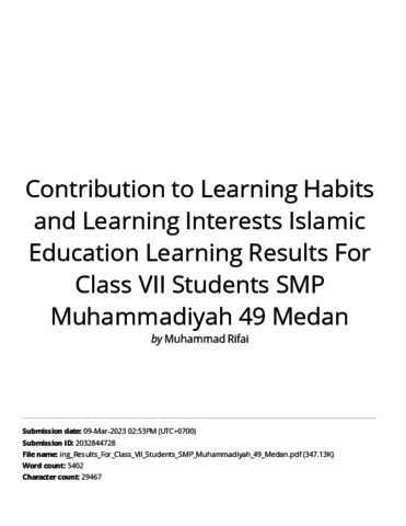 HASIL TURNITIN-Contribution to Learning Habits and Learning Interests Islamic Education Learning Results For Class VII Students SMP Muhammadiyah 49 Medan.pdf