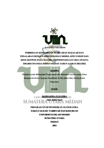 Perbedaan Kemampuan Pemecahan Masalah dan Penalaran dengan Menggunakan Model Open-Ended dan Mind Mapping pada Materi Eksponen Kelas X SMA Swasta Dharmawangsa Medan Tahun Ajaran 2021/2022