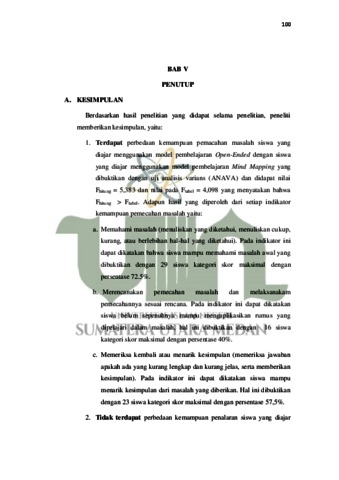 Uncontrolled Keywords: Kemampuan Pemecahan Masalah, Kemampuan Penalaran, Model Open Ended, dan Model Mind Mapping.