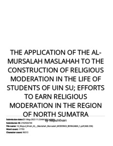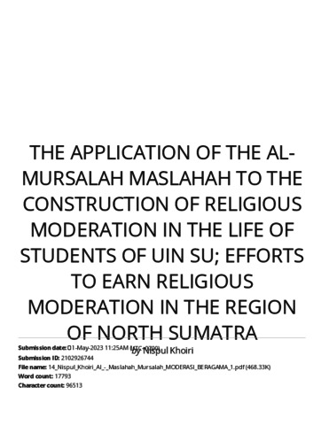 Khori, Nispul (2023) The Application Of The Al-Mursalah Maslahah To The Construction Of Religious Moderation In The Life Of Students Of UIN SU; Efforts To Earn Religious Moderation In The Region Of North Sumatra. Russian Low Journal, 11 (3). pp. 132-156.