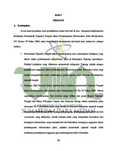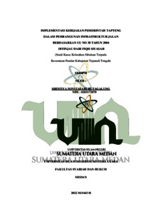 Skripsi ini membahas mengenai pelaksanaan aturan dan kebijakan yang telah disusun oleh pemerintah Tapanuli Tengah dalam pembangunan infrastruktur jalan, dimana dalam Undang-Undang Nomor 38 Tahun 2004 Pasal 16 ayat (3) Tentang Jalan menjelaskan bahwa pemerintah daerah memiliki wewenang dalam penyelenggaraan jalan kabupaten, jalan kota, dan jalan desa meliputi pengaturan, pembinaan, pembangunan, dan pengawasan. Metode yang digunakan dalam penelitian ini adalah penelitian yuridis empiris atau penelitian lapangan yang mengkaji ketentuan hukum yang berlaku serta apa yang terjadi kenyataan dalam masyarakat dan mengunakan dua sumber data yaitu data primer dan data sekunder. Data primer di dapatkan dari wawancara langsung kepada tokoh pemerintahan Dinas Pekerjaan Umum dan Penataan Ruang Kabupaten Tapanuli Tengah. Data sekunder adalah data yang di dapatkan dari beberapa literatur seperti buku, jurnal, yang berhubungan dengan penelitian ini. Hasil dari penelitian dapat disimpulkan bahwa menurut Undang-Undang Nomor 38 tahun 2004 Tentang Jalan bahwa untuk terpenuhinya peranan jalan sebagaimana mestinya, pemerintah daerah mempunyai hak dan kewajiban dalam menyelenggarakan jalan. Perumusan kebijakan penyelenggaraan jalan kabupaten dan jalan desa berdasarkan kebijakan nasional di bidang jalan dengan memperhatikan keserasian antar daerah dan antar kawasan. Dari hasil penelitian yang dilakukan dapat ditarik kesimpulan bahwa pemerintah Kabupaten Tapanuli Tengah belum sepenuhnya melaksanakan pembangunan infrastruktur jalan di Kabupaten Tapanuli Tengah berdasarkankan kebijakan yang telah dibuat dan undang-undang yang berlaku. Hal dapat dilhat dari kerusakan jalan yang terjadi di beberapa wilayah kelurahan yang ada di Tapanuli Tengah, salah satunya diwilayah kelurahan Sibuluan Terpadu. Kerusakan jalan dan terkendalanya pembangunan infrastruktur jalan ini disebabkan kurangnya anggaran dalam proses pembangunan infrastruktur jalan sampai saat ini. Oleh sebab itu, pemerintah Kabupaten Tapanuli Tengah diharapkan dalam menyelesaikan pembangunan infrastruktur jalan yang berada di Kelurahan Sibuluan terpadu, agar terjadi keseimbangan pemerataan dan pembangunan antar daerah dan antar kawasan.