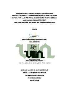 Pasaribu, Muhammad Pardamean (2022) Pandangan Ketua Majelis Ulama Indonesia (MUI) Kecamatan Sosa Julu Terhadap Larangan Seorang Istri Yang Kawin Lari Pulang Ke Rumah Orang Tuanya Sebelum Marulahari (Walimahtul ‘ursy) (Studi Kasus Masyarakat Desa Hurung Jilok Kabupaten Padang Lawas). Skripsi thesis, Universitas Islam Negeri Sumatera Utara.