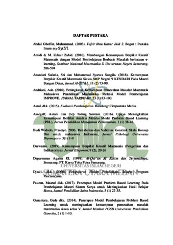 | Uncontrolled Keywords: | Kemampuan Pemecahan Masalah dan Berpikir Kreatif, Model Pembelajaran Problem Based Learning dan Pembelajaran Kooperatif Tipe Two Stay- Two Stray. |