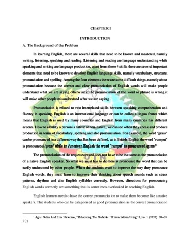 Rahmadhani, Anggy (2021) The Effect of Homophones’ Game Strategy On The Students English Pronunciation Mastery At The Second Grade Students MTsN Tanjung Pura. Skripsi thesis, Universitas Islam Negeri Sumatera Utara.