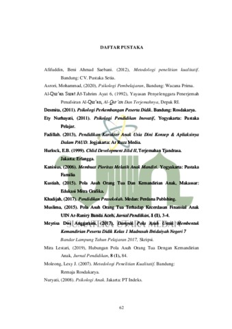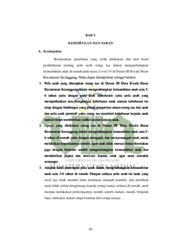 Khairunnisa, Khairunnisa (2021) Pola Asuh Orang Tua Dalam Mengembangkan Kemandirian Anak Usia 5-6 Tahun di Rumah Pada Masa Covid-19 di Dusun III Desa Kwala Besar Kecamatan Secanggang. Skripsi thesis, Universitas Islam Negeri Sumatera Utara.