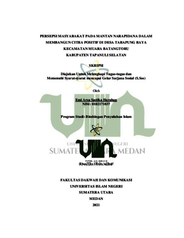 Harahap, Emi Arsa Sastika (2021) Persepsi Masyarakat Pada Mantan Narapidana Dalam Membangun Citra Positif di Desa Tarapung Raya Kecamatan Muara Batangtoru Kabupaten Tapanuli Selatan. Skripsi thesis, Universitas Islam Negeri Sumatera Utara.