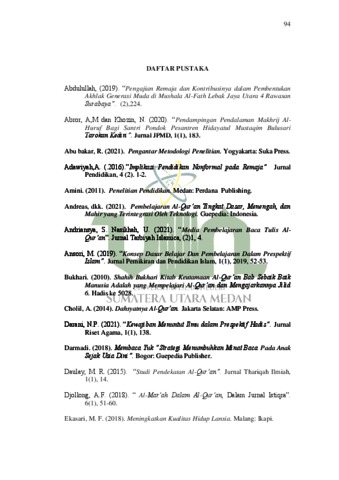 Sirait, Azyana Alda (2022) Pembelajaran Membaca Al-Qur’an Bagi Wanita Lanjut Usia (Lansia) di Rumah Qur’an Al-Muttaqin Desa Sukadamai Barat Kecamatan Pulo Bandring Kabupaten Asahan. Skripsi thesis, Universitas Islam Negeri Sumatera Utara.