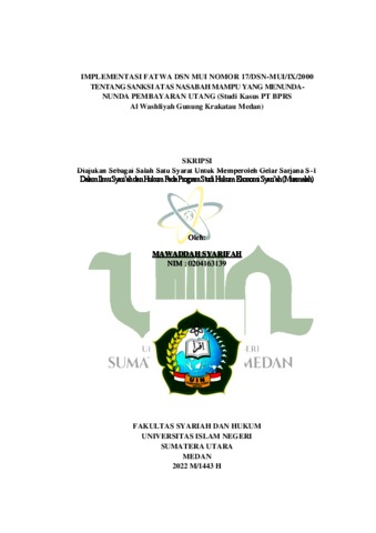 Syarifah, Mawaddah (2022) Implementasi Fatwa DSN-MUI NO.17/DSN-MUI/IX/2000 Tentang Sanksi Atas Nasabah Mampu Yang Menunda-Nunda Pembayaran Utang (Studi Kasus PT BPRS Al Washliyah Gunung Krakatau Medan). Skripsi thesis, Universitas Islam Negeri Sumatera Utara.