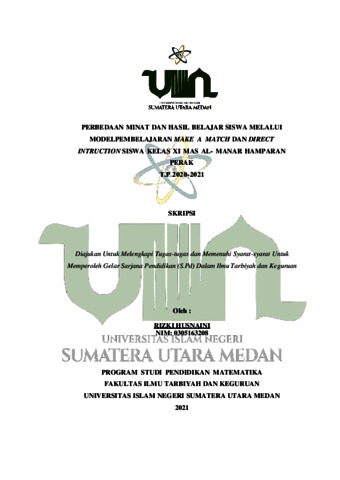 Husnaini, Rizki (2021) Perbedaan Minat Dan Hasil Belajar Siswa Melalui Model Pembelajaran Make A Match Dan Direct Intruction Siswa Kelas XI Mas Al- Manar Hamparan Perak T.P 2020-2021. Skripsi thesis, Universitas Islam Negeri Sumatera Utara.