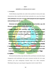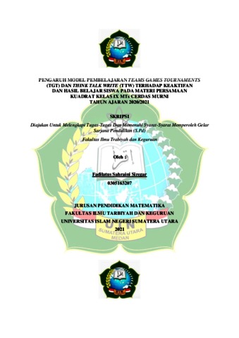 Pengaruh Model Pembelajaran Teams Games Tournament Dan Think Talk Write Terhadap Keaktifan Dan Hasil Belajar Matematika Siswa Pada Materi Persamaan Kuadrat Kelas IX MTs Cerdas Murni Tahun Ajaran 2020/2021