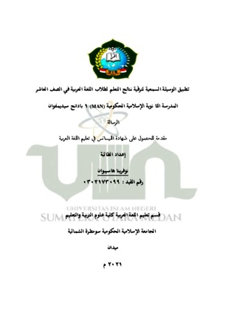Hasibuan, Noprita (2021) Penerapan Media Audio Untuk Meningkatkan Hasil Belajar Bahasa Arab Kelas X MAN 1 Padangsidimpuan. Skripsi thesis, Universitas Islam Negeri Sumatera Utara.