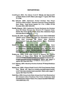 | Uncontrolled Keywords: | Penerapan Protokol Kesehatan, Keputusan Menteri Kesehatan Nomor HK.01.07/MENKES/328/2020 |