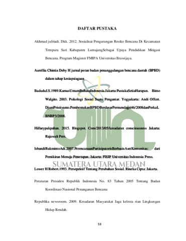 Hasibuan, Masriana (2021) Peran Badan Penanggulangan Bencana Daerah (BPBD) Dalam Menumbuhkan Kesadaran Masyarakat Guna Mencegah Banjir Di desa Hatapang Kabupaten Labuhan Batu Utara Pada Tahun 2019. Skripsi thesis, Universitas Islam Negeri Sumatera Utara.