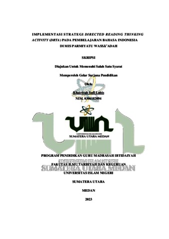 Lubis, Khairiyah Sufi (2023) Implementasi Strategi Directed Reading Thinking Activity Pada Pembelajaran Bahasa Indonesia Di MIS Parmiyatu Wassa'Adah. Skripsi thesis, Universitas Islam Negeri Sumatera Utara.