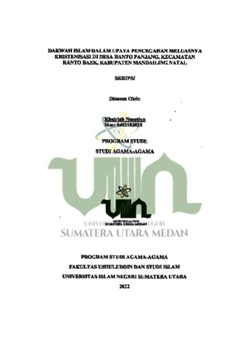 Nasution, Khoiriah (2022) Dakwah Islam dalam Upaya Pencegahan Meluasnya Kristenisasi di Desa Ranto Panjang, Kecamatan Ranto Baek, Kabupaten Mandailing Natal. Skripsi thesis, Universitas Islam Negeri Sumatera Utara.