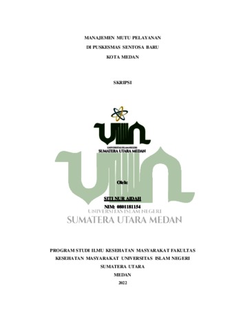 Aidah, Siti Nur (2022) Manajemen Mutu Pelayanan Di Puskesmas Sentosa Baru Kota Medan Kecamatan Kota Medan. Skripsi thesis, Universitas islam negeri Sumatera Utara Medan.