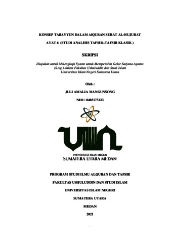 Simangunsong, Juli Amalia (2021) Konsep Tabayyun Dalam Alquran Surah al-Hujurat Ayat 6 (Studi Analisis Tafsir-Tafsir Klasik). Skripsi thesis, Universitas Islam Negeri Sumatera Utara.