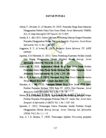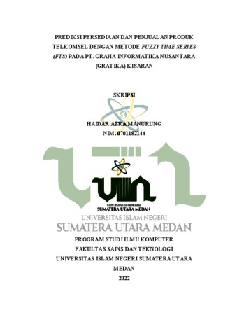 Manurung, Haidar Azra (2022) Prediksi Persediaan Dan Penjualan Produk Metode Fuzzy Time Series (FTS) Pada PT. Graha Nusantara (GRATIKA) Kisaran. Skripsi thesis, Universitas Islam Negeri Sumatera Utara.