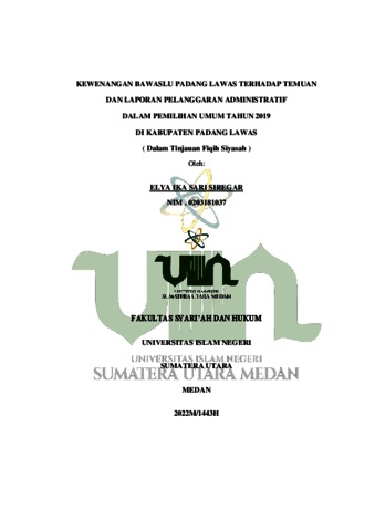 Siregar, Elya Ika Sari (2022) Kewenangan Banwaslu Padang Lawas terhdap temuan dan laporan pelanggaran dalam pemilihan umum Tahun 2019 di Kabupaten Padang Lawas (Dalam Tinjauan Fiqih Siyasah). Skripsi thesis, Universitas Islam Negeri Sumatera Utara.