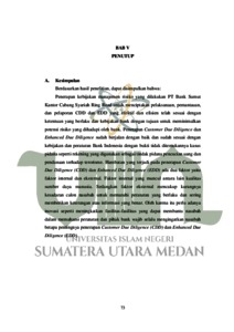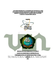 Penelitian ini berjudul Analisis Penerapan Customer Due Diligence (CDD) dan Enhanced Due Diligence (EDD) Dalam Mitigasi Risiko Nasabah Pada PT Bank Sumut Kantor Cabang Syariah Ring Road yang bertujuan untuk menjawab rumusan masalah dalam penelitian yaitu bagaimana Penerapan Customer Due Diligence (CDD) dan Enhanced Due Diligence (EDD) Dalam Mitigasi Risiko Nasabah Pada PT Bank Sumut Kantor Cabang Syariah Ring Road. Metode penelitian yang digunakan adalah penelitian kualitatif yang menghasilkan data deskriptif dengan melakukan pengamatan pada objek penelitian dan kemudian di analisis. Hasil dari penelitian ini adalah PT Bank Sumut Kantor Cabang Syariah Ring Road telah memiliki kebijakan dan prosedur mengenai penerapan Customer Due Diligence (CDD) dan Enhanced Due Diligence (EDD) yang terdiri dari empat prosedur yaitu identifikasi, verifikasi, pemantauan hingga pelaporan. PT Bank Sumut Kantor Cabang Syariah Ring Road telah melaksanakan secara rinci penerapan Customer Due Diligence (CDD) dan Enhanced Due Diligence (EDD) sesuai dengan pedoman dasar yang dimiliki PT Bank Sumut Syariah meskipun penerapan kedua prinsip tersebut terkadang mengalami hambatan dari berbagai faktor.