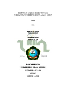 Yusuf, Muhamad (2022) Keputusan majelis hakim tentang warisan mafqud di Pengadilan Agama Medan. Masters thesis, Pascasarjana Universitas Islam Negeri Sumatera Utara.