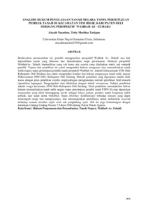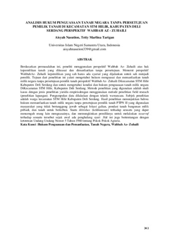 Nasution, Aisyah and Tarigan, Tetty Marlina (2022) Analisis Hukum Penguasaan Tanah Negara Tanpa Persetujuan Pemilik Tanah Di Kecamatan Stm Hilir, Kabupaten Deli Serdang Perspektif Wahbah Az-Zuhaili. Jurnal Al-Mashlahah. ISSN 2581-2556