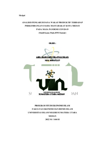 Pulungan, Abd. Hadi Saputra (2022) Analisis Pengaruh Dana Wakaf Produktif Terhadap Perkembangan Usaha Masyarakat Kota Medan Pada Masa Pandemi Covid-19 (Studi Kasus Pada BWI Sumut). Skripsi thesis, Universitas Islam Negeri Sumatera Utara.