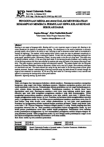 Ritonga, Seprina and Rambe, Riris Nurkholidah (2022) Penggunaan media big book dalam meningkatkan kemampuan membaca permulaan siswa kelas rendah sekolah dasar. Jurnal Cakrawala Pendas, 8 (4). ISSN p-ISSN: 2442-7470 e-ISSN: 2579-4442