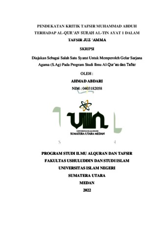 Abdari, Ahmad (2022) Pendekatan Kritik Tafsir Muhammad Abduh Terhadap Al-Qur’an Surah Al-Tin Ayat 1 Dalam Tafsir Juz ‘Amma. Skripsi thesis, Universitas Islam Negeri Sumatera Utara.