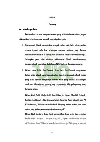 Al-Qur’an adalah wahyu yang diturunkan kepada Nabi Muhammad saw. yang kebenarannya mutlak. Namun demikian penafsiran para mufasir terhadap Al- Qur’an sedikit banyaknya ada yang berbeda, disebabkan oleh latarbelakang mufasirnya ataupun pemahaman dari masing-masing mufasir terhadap ayat yang dimaksud. Seperti Muhammad Abduh yang menafsirkan lafaz al-tin dan al-zaitun dengan peristiwa besar yang terjadi dibaliknya, dimana ia menafsirkannya dengan lafaz tersebut menunjukkan fase-fase kehidupan manusia yang dimulai dengan Nabi Adam a.s. hingga Nabi Muhammad saw.. Penafsiran Muhammad Abduh terhadap lafaz tersebut ternyata tidak dijumpai pada mufasir terdahulu, padahal kedua lafaz tersebut bukanlah lafaz yang baru atau tidak dimengerti oleh kaum muslimin sejak Nabi Muhammad saw. bahkan sudah sangat masyhur bagi mereka. Penelitian ini bertujuan untuk memberikan pemahaman atas penafsiran Muhamamad Abduh yang ditinjau dari aspek bahasa, aspek riwayat, dan juga dilakukan perbandingan terhadap mufasir lain. Sehingga dapat dipertimbangkan dan dapat dilihat kesesuaian penafsiran Muhammad Abduh dengan kriteria mufasir yang ada. Penelitian ini menggunakan metode kepustakaan (library research). Kepustakaan yang dimaksud seperti buku-buku tafsir, jurnal, skripsi, buku yang berkaitan dengan judul yang sedang diteliti. Hasil dari penelitian ini adalah penafsiran terhadap lafaz al-tin dan al-zaitun memiliki dua makna yang dapat diterima dari para mufasir. yang pertama penafsiran kedua lafaz tersebut berupa tafsir literal, yang dimana maksud dari lafaz al-tin dan al-zaitun adalah kedua buah itu sendiri yaitu buah tin dan buah zaitun yang sudah memang dikenal betul oleh orang arab, yang kedua penafsiran yang dapat diterima oleh para mufasir dari lafaz al-tin dan al-zaitun ialah penyebutan sumpah Allah swt. pada kedua lafaz tersebut bukan hanya sebatas makna buah itu sendiri yang manfaatnya begitu banyak, melainkan lebih dari itu penyebutan sumpah Allah tersebut untuk mengingatkan kepada manusia bahwa ada peristiwa besar dibalik lafaz al-tin dan al-zaitun tersebut.
