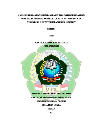 Ritonga, Hany Lisa Ariska Br. (2022) Analisis Perlakuan Akuntansi Aset Biologis Berdasarkan PSAK No. 69 Tentang Agrikultur Pada PT. Perkebunan Nusantara II Sawit Seberang Kab. Langkat. Skripsi thesis, Universitas Islam Negeri Sumatera Utara.