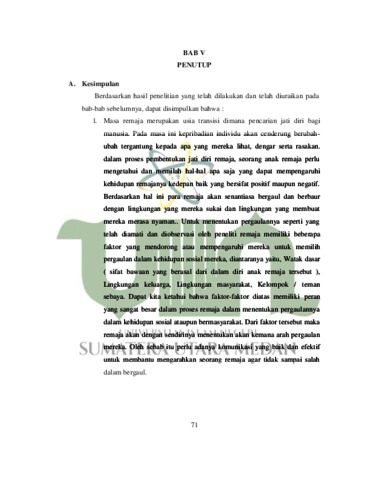 Skripsi ini membahas tentang bagaimana hasil pembahasan komunikasi persuasif orang tua dan anak dalam membentuk jati diri mereka sebagai remaja. Sehingga mendapatkan hasil bahwa komunikasi persuasif mampu dan berperan penting dalam pembentukan jati diri anak terkhususnya pada anak remaja yang dibahas pada penelitian ini. Di dalamnya terdapat pemahaman seperti apa sebenar nya peranan serta pengaruh komunikasi persuasif orang tua terhadap pembentukan jati diri anak. Bagaimana proses orang tua dalam mempengaruhi dan mengajak anak remajanya untuk dapat memiliki kebiasaan yang baik dengan menerapkan dan menanamkan nilai-nilai agama serta sosial yang baik sejak dini. Remaja sering kali dianggap meresahkan bagi sebagian orang. Namun, sebenarnya hal tersebut tidak mutlak dialami oleh semua anak remaja. Tidak semua anak remaja selalu melakukan hal-hal yang tidak baik serta buruk. Ada juga kelompok anak remaja yang memiliki nilai positif di lingkungan masyarakatnya. Hal tersebut bisa tercapai apabila faktor-faktor yang mempengaruhi anak remaja dalam beradaptasi dengan lingkungannya memberikan pelajaran yang positif maka akan terbentuk pula jati diri remaja yang baik dan positif. Seperti memberikan mereka pemahaman bagaimana bersikap dan memiliki karakter serta akhlak yang baik, sopan dan santun taat maupun disiplin terhadap aturan dan norma yang ada sehingga mampu menyesuaikan diri terhadap lingkungannya. Seorang anak remaja akan terbiasa melakukan hal baik ketika mereka sudah terbiasa dengan ajaran yang baik juga serta memiliki ketaqwaan dan nilai agama yang kuat.