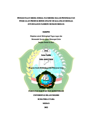Nabila, Intan (2022) Penggunaan Media Sosial Facebook Dalam Peningkatan Penjualan Produk Bisnis Online Di Kalangan Remaja (Studi Kasus Fashion Muslim Medan). Skripsi thesis, Universitas Islam Negeri Sumatera Utara.