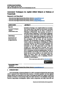 | Uncontrolled Keywords: | Assessment Techniques; Teachers; Akidah Akhlak course |