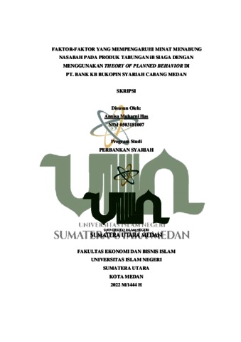 Has, Annisa Muharni (2022) Faktor-Faktor Yang Mempengaruhi Minat Menabung Nasabah Pada Produk Tabungan iB Siaga Dengan Menggunakan Theory Of Planned Behavior Di PT. Bank KB Bukopin Syariah Cabang Medan. Skripsi thesis, Universitas Islam Negeri Sumatera Utara.