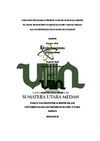 Batubara, Nur Azizah (2022) Strategi Pemasaran Produk Tabungan iB Siaga Bisnis PT. Bank KB Bukopin Syariah Kantor Cabang Medan Dalam Meningkatkan Jumlah Nasabah. Skripsi thesis, Universitas Islam Negeri Sumatera Utara.
