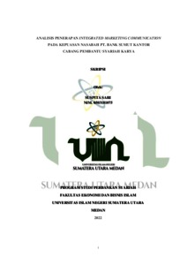 Sari, Suspita (2022) Analisis Penerapan Integrated Marketing Communication Pada Kepuasan Nasabah PT. Bank Sumut Kantor Cabang Pembantu Syariah Karya. Skripsi thesis, Universitas Islam Negeri Sumatera Utara.