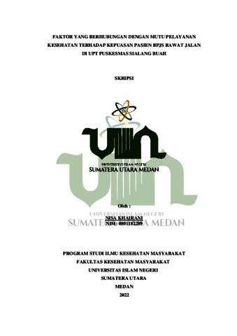 Khairani, Nisa (2022) Faktor Yang Berhubungan Dengan Mutu Pelayanan Kesehatan Terhadap Kepuasan Pasien BPJS Rawat Jalan di UPT Puskesmas Sialang Buah. Skripsi thesis, Universitas Islam Negeri Sumatera Utara.