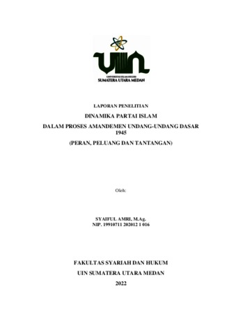 Amri, Syaiful (2023) DINAMIKA PARTAI ISLAM DALAM PROSES AMANDEMEN UNDANG-UNDANG DASAR 1945 (PERAN, PELUANG DAN TANTANGAN). UIN Sumatera Utara Medan, Indonesia.