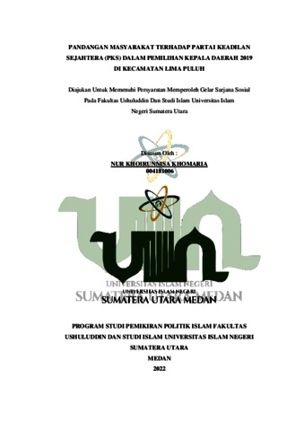 Khomaria, Nur Khoirunnisa (2022) Pandangan Masyarakat Terhadap Partai Keadilan Sejahtera (PKS) Dalam Pemilihan Kepala Daerah 2019 Di Kecamatan Lima Puluh. Skripsi thesis, Universitas Islam Negeri Sumatera Utara.