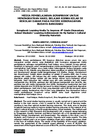 Ardita, Shafa and Anas, Nirwana (2022) Media pembelajaran scrapbook untuk meningkatkan hasil belaajr siswa Kelas IV Sekolah Dasar pada Materi Keberagaman Budaya Bangsaku. Primary: Jurnal Keilmuan dan Kependidikan Dasar, 14 (2). ISSN p-ISSN: 2086-1362, e-ISSN: 2623-2685.