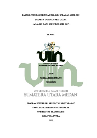 Daulay, Amelia Fitri (2022) Faktor Cakupan Imunisasi Polio Di Wilayah Aceh, DKI Jakarta Dan Sulawesi Utara (Analisis Data Sekunder SDKI 2017). Other thesis, Universitas Islam Negeri Sumatera Utara.