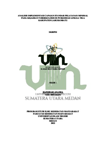 Ananda, Hafizhah (2022) Analisis Implementasi Capaian Standar Pelayanan Minimal Pada Kejadian Tuberkulosis di Puskesmas Lingga Tiga Kabupaten Labuhanbatu. Skripsi thesis, Universitas Islam Negeri Sumatera Utara.