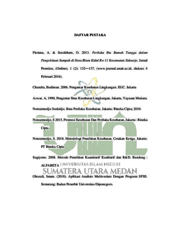 Chania, Khaida Rafni (2022) Hubungan Perilaku Ibu Rumah Tangga Dengan Pengelolaan Sampah Rumah Tangga Di Sicanang Belawan. Skripsi thesis, Universitas Islam Negeri Sumatera Utara.